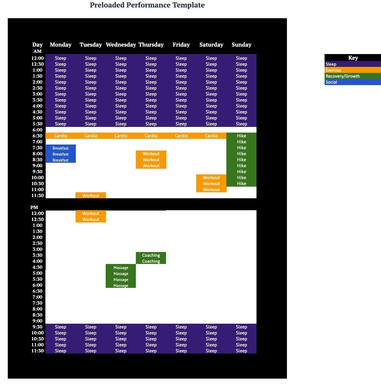 Bonus Tip: If you're not already consistently focusing on multiple of these pillars, don't try to go from zero to one hundred. You can now create your ideal preloaded schedule, but start by implementing one item at a time.
